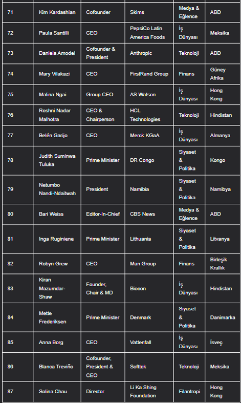 FORBES’UN 100 KİŞİLİK LİSTESİ