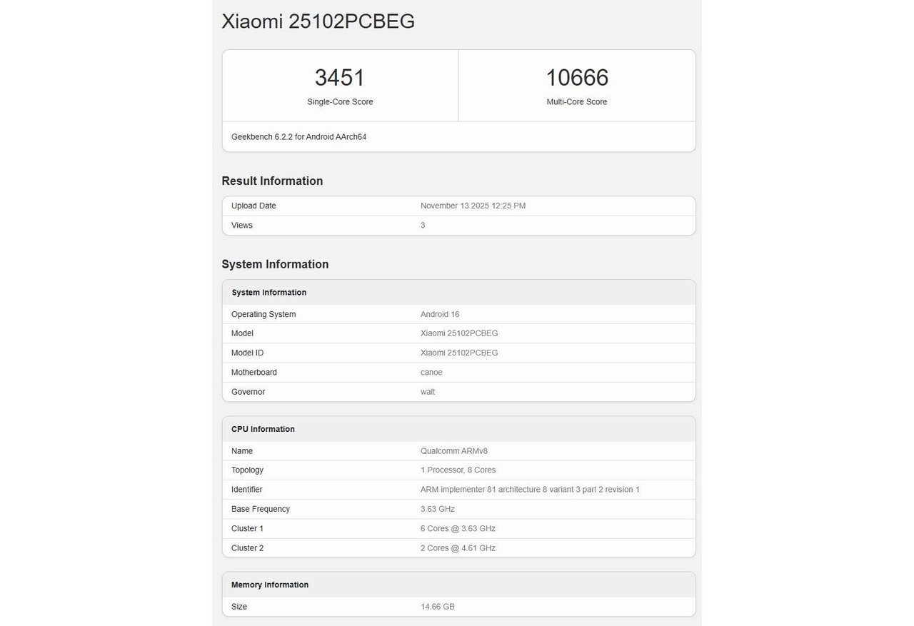 Geekbench kayıtları, Poco F8 Ultra’nın gücünü Qualcomm’un en güncel üst seviye mobil platformu olan Snapdragon 8 Elite Gen 5 işlemcisinden aldığını gösteriyor. Test edilen modelde 16 GB RAM bulunduğu görülüyor ve cihaz Android 16 tabanlı bir yazılım ile test edildi. Cihazın lansman sırasında ise arayüz tarafında HyperOS 3.0 ile gelmiş.