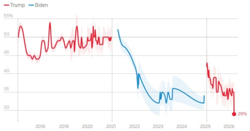 Trump’ın Görev Onay Oranı İkinci Döneminde Tarihinin En Düşük Seviyesine Ulaştı